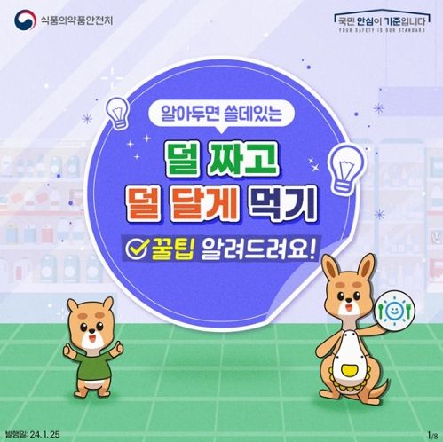 식약처에서는 국민의 건강한 식생활에 도움을 주기 위해 '나트륨·당류저감 표시기준'을 마련하고 나트륨· 당류 줄인 제품을 개발하도록 기술 지원하고 있어요.