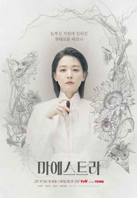tvN 새 토일드라마 ‘마에스트라’(극본 최이윤, 홍정희/ 연출 김정권/ 기획 스튜디오드래곤/ 제작 래몽래인, 그룹에이트)에서 무빙 포스터를 공개한 가운데 이영애(차세음 역), 이무생(유정재 역), 김영재(김필 역), 황보름별(이루나 역)을 둘러싼 해바라기 덩굴과 사이에 숨은 오브제들이 의미심장해 호기심을 자극한다.