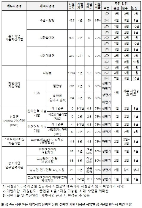 중소벤처기업부는 향후 세부사업별 공고를 통해 지원대상, 지원내용, 조건 등을 상세히 공고할 예정이며(참고1), 2월까지 범부처 설명회 및 지역별 설명회를 진행할 계획이다.