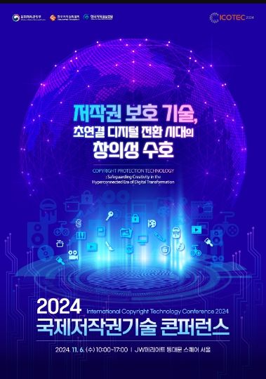 데일리굿타임 유다영 기자 | 문화체육관광부는 한국저작권위원회, 한국저작권보호원과 함께 11월 6일, 제이더블유(JW) 메리어트 동대문 스퀘어 서울에서 ‘2024 국제 저작권기술 콘퍼런스(ICOTEC, International Copyright Technology Conference)’를 개최한다. 이번 행사는 온라인으로도 생중계하며, 영문 통역도 제공한다.