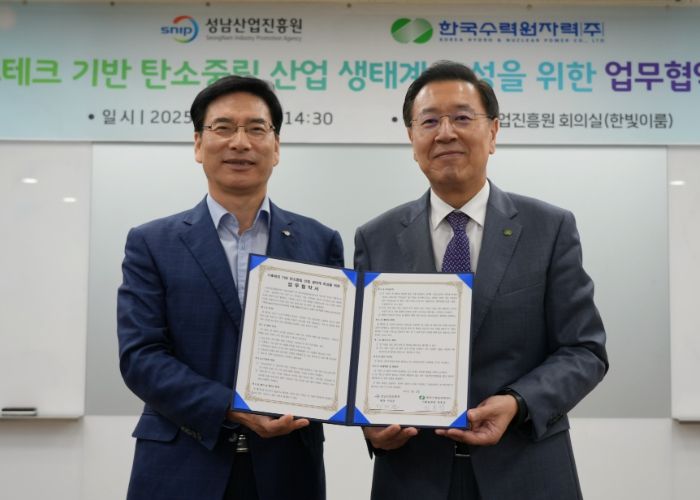 데일리굿타임 유종운 기자 | 성남산업진흥원과 한국수력원자력이 기후위기 대응 이라는 국가적 과제 속에서 탄소중립 사회 실현을 위한 기후테크 산업 생태계 조성에 협력하기로 했다.