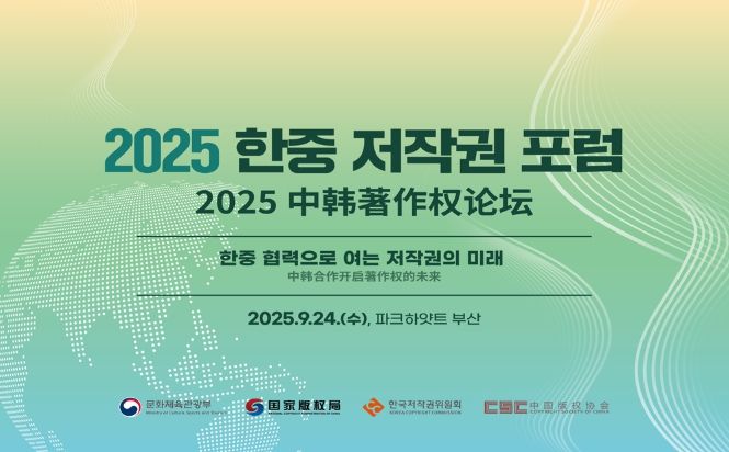 데일리굿타임 유다영 기자 | 문화체육관광부는 한국저작권위원회, 중국 국가판권국과 함께 9월 24일, 파크하얏트 부산에서 ‘2025 한중 저작권 정부간회의(오전)’와 ‘2025 한중 저작권 포럼(오후)’을 열어 저작권 보호를 위한 양국 협력 방안과 인공지능(AI), 블록체인 등 기술 발전에 따른 저작권 정책 변화 및 대응을 논의한다.
