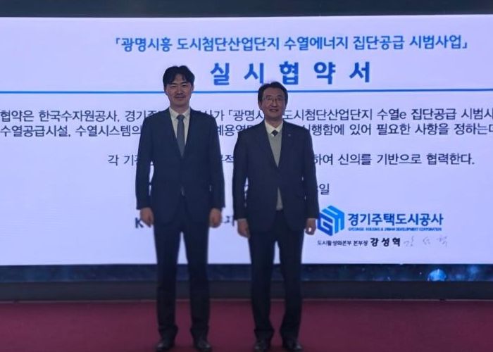 데일리굿타임 유종운 기자 | 경기주택도시공사(GH)는 3일 GH 수원 본사 9층 역량개발센터에서 한국수자원공사(K-water)와 함께 ‘광명시흥 도시첨단산업단지 수열에너지 집단공급 시범사업’ 추진을 위한 실시협약을 체결했다고 밝혔다. 이 자리에는 양 기관 관계자 약 30명이 참석했다.