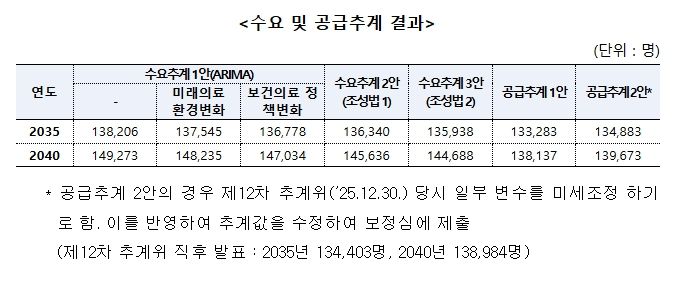 한편, 이날 보정심에 보고된 수급추계 결과는 다음과 같다.