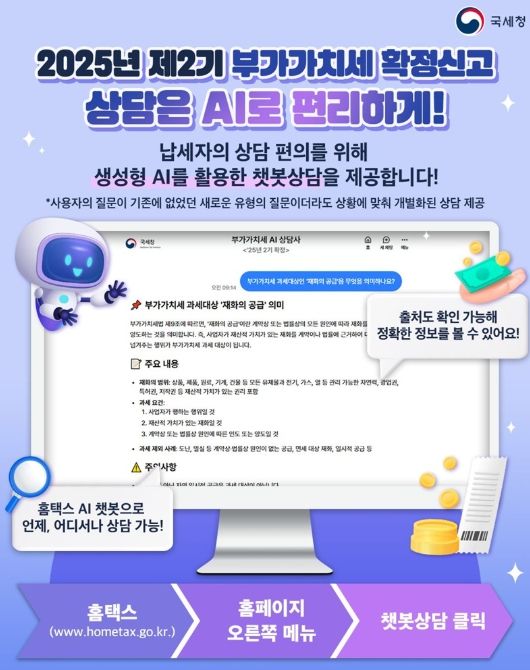 데일리굿타임 유주영 기자 | ■ 2025년 제2기 부가가치세 확정신고 상담은 AI로 편리하게!