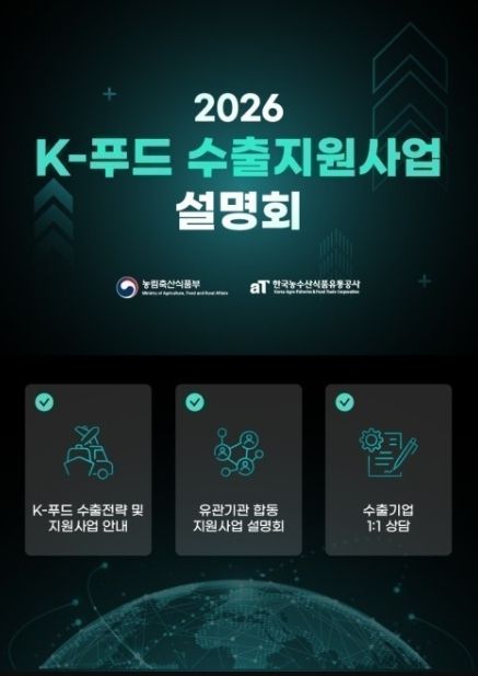 데일리굿타임 유종운 기자 | 농림축산식품부는 K-푸드의 글로벌 진출 확대를 위해 전년보다 900억원 증가한 7,070억원 규모의 2026년 K-푸드 수출지원사업 설명회를 1월 23일 서울 과학기술컨벤션센터에서 개최한다고 밝혔다.