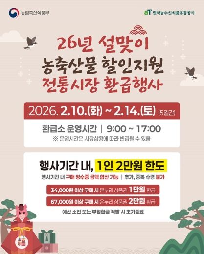 데일리굿타임 유주영 기자 | ■ 2026년 설맞이 농축산물 할인지원 전통시장 환급행사