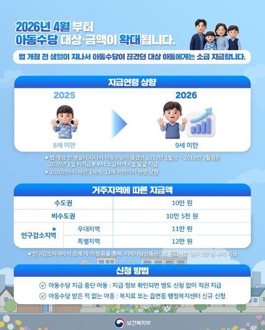데일리굿타임 유주영 기자 | 2026년 4월부터 아동수당 대상·금액이 확대됩니다.