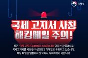 데일리굿타임 유주영 기자 | ■ 국세 고지서 사칭 해킹메일 주의! 최근 '국세 고지서.pdf(tax_notice).zip'이라는 파일명으로 국세고지서를 사칭한 악성코드가 이메일로 유포되고 있습니다. 해당 파일을 열람하지 말고 즉시 삭제하시기 바랍니다. ■ 메일 수신 시 확인해야 할 체크리스트 ① 국세청에서 보낸 메일과 문자는 홈택스에서 확인! ② 의심스러운 제목 열람 전에 삭제, 스팸메일 신고 ③ 모르는 발신자 주소 링크, 첨부파일 클릭 금지 ④ 계정정보 요구에 아이디, 패스워드 입력 금지 국세청 발신메일 진위여부는 홈택스에서 직접 확인 가능합니다!