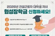데일리굿타임 유종운 기자 | 건설근로자공제회(이사장 직무대행 권혁태)와 협성문화재단(이사장 박석귀)은 건설근로자의 대학생 자녀 학업 지원을 위해 ‘2026년 신규 협성장학생’을 선발한다. 지원대상은 건설근로자공제회에 등록된 건설근로자로 총 적립일수가 600일 이상이고, 2025년도 근로내역은 최소 100일이다. 건설근로자의 자녀 가운데 국내 4년제 대학 신입생과 2026년 기준 2~3학년 재학생을 대상으로 장학생을 모집한다. 선발 인원은 20명 내외다. 제출서류, 심사기준은 협성문화재단 홈페이지 내 공지사항을 통해 확인할 수 있다. 접수기간은 오는 12월 15일부터 내년 1월 5일까지이며, 협성문화재단에 제출서류를 등기우편으로 제출해야 한다. 서류합격자는 2026년 1월 26일 발표되며, 면접은 2월 2일부터 6일까지 진행된다. 최종 합격자는 2월 9일 재단 홈페이지에 게시되고, 2월 12일 장학증서 수여식이 열릴 예정이다. 장학생에게는 등록금 전액과 함께 매 학기 50만원의 학습보조금이 지원된다. 또한 인문학 강의, 독서 프로그램, 해외 탐방 및 봉사 활동 등 다양한 장학 프로그램 참여 기회도 제공된다. 장학