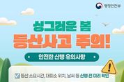데일리굿타임 유주영 기자 | ■ 싱그러운 봄 등산사고 주의! · 등산 소요시간, 대피소 위치, 날씨 등 산행 전 미리 확인 · 가벼운 몸풀기 및 체력에 맞는 등산로 선택 · 산행 중 몸에 무리가 오면 즉시 하산 · 반드시 지정된 등산로 이용 · 출입이 통제된 위험 구역 진입 금지 · 체온 유지를 위한 여벌의 옷이나 보온용품 챙기기