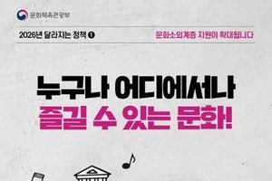 데일리굿타임 유주영 기자 | 2026년 달라지는 정책① 문화 소외계층 지원이 확대됩니다. 누구나 어디에서나 즐길 수 있는 문화! ■ 2026년에 달라지는 통합문화이용권 - 무엇이 달라지나요? ① 소외계층 270만 명 대상 연간 15만 원 지급 · 소외계층 264만 명→270만 명 / 14만 원→15만 원 ② 청소년·생애전환기 1만 원 추가 지원 · 청소년: 13~18세 / 생애전환기: 60~64세 ■ 2026년 달라지는 지역 순회 공연/박물관 - 무엇이 달라지나요? ① 인기공연 지역 순회 대폭 확대 · 중·소형 공연작품 중심→국립·민간단체 인기 공연 ② 전국 공·사립 박물관·미술관 지역 순회 확대 · 11개관 관당 1회 이상→70개관 관당 2회 이상 2026년 달라지는 정책② 온 국민 여행으로 인구감소지역을 활성화합니다. 온 국민 여행으로 인구감소지역 활성화 ■ 2026년 달라지는 지역여행 활성화 정책 - 무엇이 달라지나요? ① 농어촌 여행경비 50% 환급 시범 실시 · 농어촌 지역 여행경비의 50%를 지역화폐로 환급 (인구감소지역 84