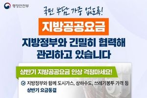 데일리굿타임 유주영 기자 | 국민 부담 가중 없도록! 지방공공요금, 지방정부와 긴밀히 협력해 관리하고 있습니다. 상반기 지방공공요금 인상 걱정마세요! - 지방정부와 함께 도시가스, 상하수도, 쓰레기봉투 가격 등 상반기 요금동결 쓰레기봉투 가격 안심하세요! - 쓰레기봉투 가격은 지방정부 조례로 정해져 갑작스러운 인상 불가