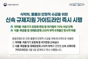 데일리굿타임 유주영 기자 | 식약처, 물품의 안정적 수급을 위한 신속 규제지원 가이드라인 즉시 시행 · 의약품·의료기기 포장재 변경 등 허가절차 70% 이상 단축 · 식품·화장품 등 대체포장재 스티커 부착 6개월간 한시적 허용 중동 전쟁으로 인한 물품의 안정적 수급을 위해 한시적으로 허용한 ① 의약품·의료기기 포장재 등 허가변경 신속심사 ② 식품·화장품 등 대체포장재 스티커 부착과 관련된 신속 규제지원 가이드라인을 4월 5일 공개하고 즉시 시행합니다. - 중동 전쟁 비상대응본부 상황점검회의(2026.4.5.)
