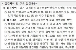 2025-10-14 유주영 기자데일리굿타임 유주영 기자 | 농림축산식품부는 올 겨울 고병원성 조류인플루엔자 발생 대비 및 방역 사각지대를 해소하기 위해 10월 15일부터 10월 24일까지 고병원성 조류인플루엔자 발생 위험이 높은지역을 대상으로 방역실태를 집중 점검할 계획이라고 밝혔다. 이번 점검은 지난 9월 12일 경기도 파주에서 과거보다 다소 이른 시기에 고병원성 조류인플루엔자가 가금농장에서 발생했고, 10월부터 겨울 철새가 본격 도래하면서 국내 추가 발생 가능성이 높아짐에 따라 선제적으로 농식품부, 행정안전부, 농림축산검역본부, 시도 관계관 합동으로 점검반을 구성하여 실시하는 것이다. 농식품부는 고병원성 조류인플루엔자가 반복적으로 발생이 많았던 전국 18개 위험 시군을 대상으로 철새도래지 및 취약농장 등 전반적인 방역실태에 대해 일제히 점검한다. 이번 점검에서 확인된 미흡사항은 즉시 보완토록 조치하고, 이행여부에 대해서도 추가로 확인할 계획이다. 최정록 농식품부 방역정책국장은 “이번 방역점검은 고병원성 조류인플루엔자의 발생 위험요인을 사전에 꼼꼼히 찾아서 보완하기 위한 조치”라면서, “앞으로도 가금농장 및 관련시설, 축산차