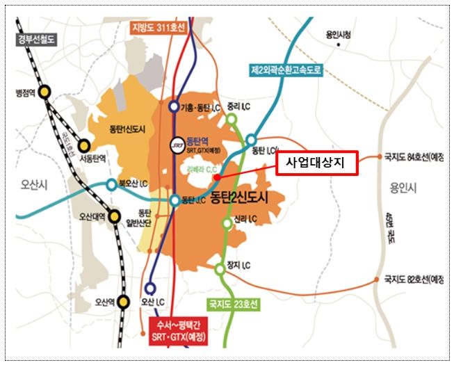 SRT, GTX-A(’24.3월 예정), 동탄인덕원선(’29년 예정), 동탄 도시철도1·2호선(’27년 예정) 이용이 가능한 동탄역으로부터 차량 약 10분 거리에 위치하여 교통이 편리한 장점이 있다.