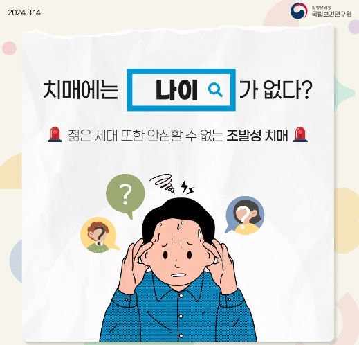 흔히 치매는 65세 이상 노인 인구에서 많이 발병하는 것으로 알려져 있지만, 비교적 젊은 40-50대에도 발병할 수 있는데, 이렇게 65세 이전에 발병하는 치매를 ‘조발성 치매’라고 한다.