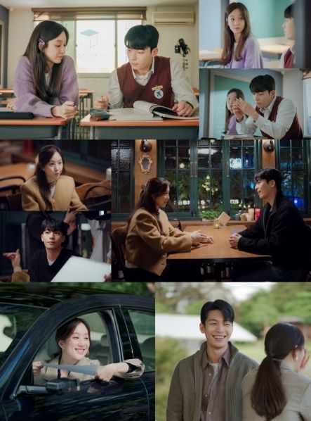 먼저 서혜진과 이준호의 과거 첫 수업 장면은 사진만으로도 설렘을 자아낸다. 현실에 치여 선택한 학원 강사의 길이지만 당당하고 야무진 서혜진의 모습부터 첫 만남에 누나라고 불러도 되냐는 발칙한 ‘연하남 재질’의 문제적 고등학생 이준호까지.