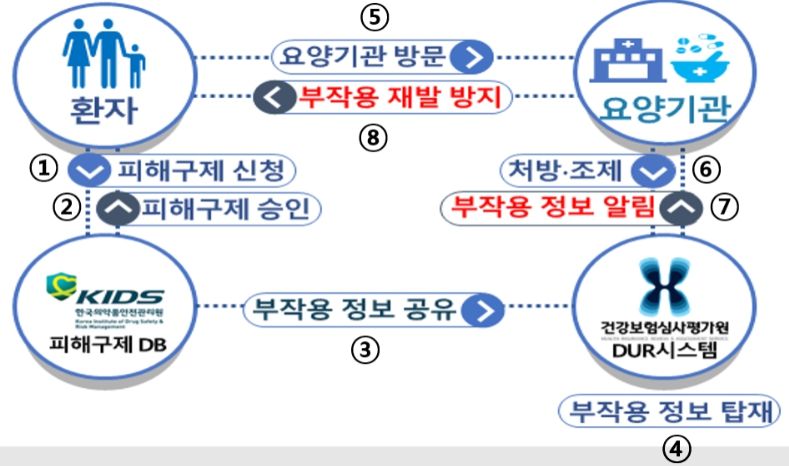 의약품 부작용을 경험한 환자가 동일·유사 계열의 의약품에 다시 노출되면 중증 부작용이 나타날 수 있다. 따라서 식약처·안전원·심평원은 ’20년 12월부터 DUR 시스템 내 환자별 부작용 데이터베이스(DB)를 구축하고 의료진에게 알림(팝업)창으로 피해구제를 받은 이력이 있는 환자의 부작용 정보를 제공해왔다.