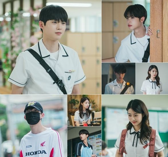먼저 비밀을 품고 있는 가언고 전학생 이동민 역으로 분한 최건은 앞에 서 있는 누군갈 향해 슬며시 웃어 보인다. 그의 미소가 보는 이들까지 절로 미소 짓게 만들며 스틸만으로도 그가 이동민 캐릭터를 어떻게 구현해 낼지 호기심이 치솟는다.