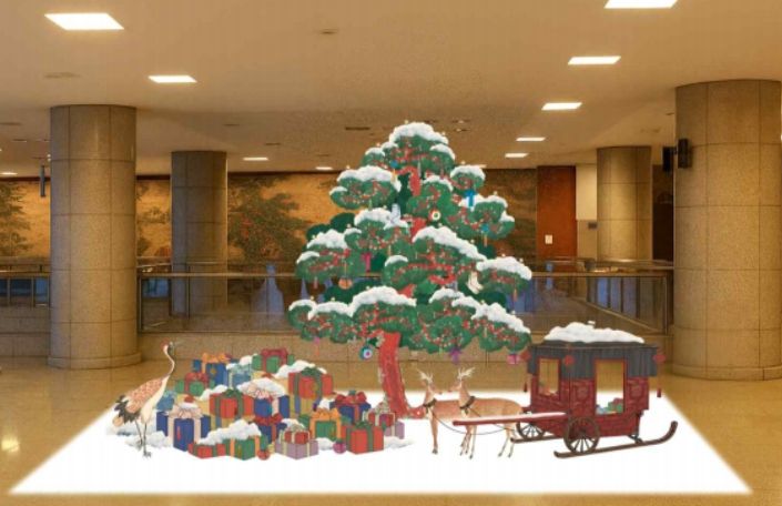 붉은 줄기의 우람한 소나무에 눈을 얹고, 댕기, 버선, 복주머니, 노리개 등 전통 양식의 소품으로 장식해 한국적인 느낌으로 탄생한 '십장생도' 크리스마스 트리 앞에는, 루돌프처럼 코가 빨갛게 물든 사슴과 함께 썰매로 재해석한 임금의 가마인 가교(駕轎)를 배치했다. 주변에는 전통 보자기로 포장한 선물 상자가 가득 쌓여 있고, 이를 한 마리의 학이 지켜보고 있어 풍성하고 행복한 연말 분위기를 더한다. 동서양의 문화가 어우러진 이 특별한 크리스마스 트리는 내년 1월 말까지 박물관 2층 로비에서 만나볼 수 있다.
