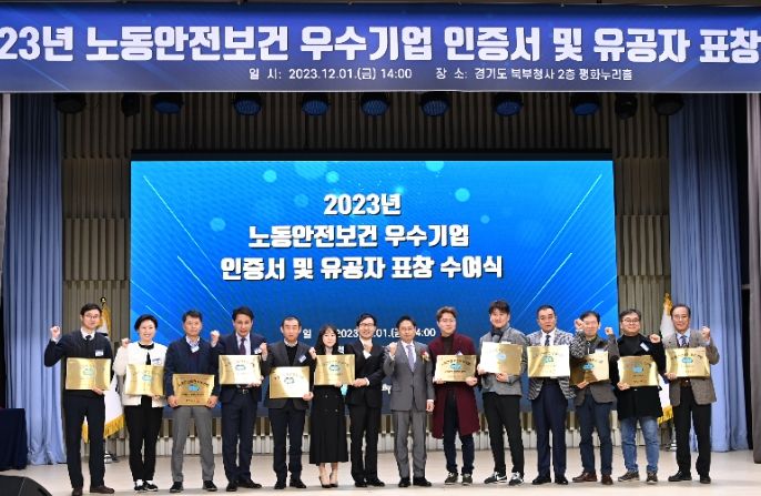 경기도는 1일 경기도청에서 오후석 경기도 행정2부지사, 금철완 노동국장, 윤덕룡 경기도일자리재단 대표이사, 경기도 노동안전지킴이 등 200여 명이 참석한 가운데 ‘2023년 경기도 노동안전보건 우수기업 인증서 수여식’을 열었다.