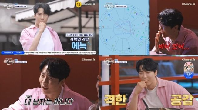 에녹은 지난 28일 방송된 채널A '요즘 남자 라이프-신랑수업'(이하 '신랑수업')에 출연해 마리아의 추천으로 점성술집에서 연애 상담을 받았다.