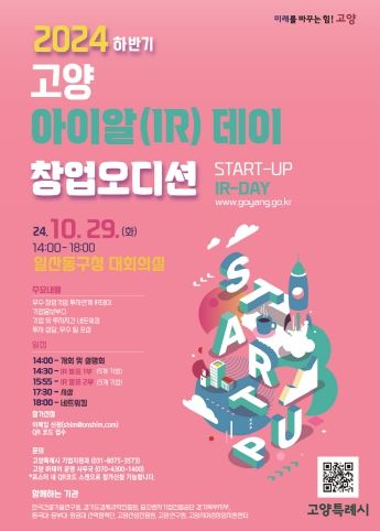 데일리굿타임 유종운 기자 | 고양특례시(시장 이동환)는 오는 10월 29일 일산동구청 대회의실에서 창업오디션‘2024 하반기 고양 아이알(IR)데이’를 개최한다고 밝혔다.