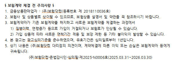 보다 자세한 가입 조건이나 적정 진단금액 설정은 비갱신형 암보험 비교사이트를 활용하여 여러 회사의 상품을 실시간으로 보험료 비교도 해볼 수 있으며, 다양한 정보를 비대면으로 주말까지 전문가와 상담이 가능하므로 3대진단비 등 종합건강보험 가입 시 편리하게 이용할 수 있다.