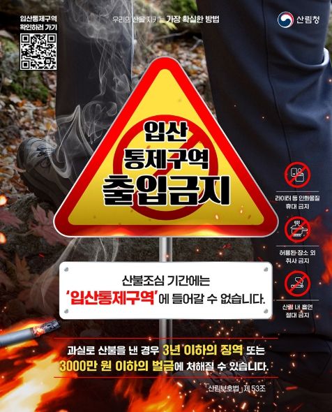 산불조심기간에는 '입산통제구역'에 들어갈 수 없습니다.