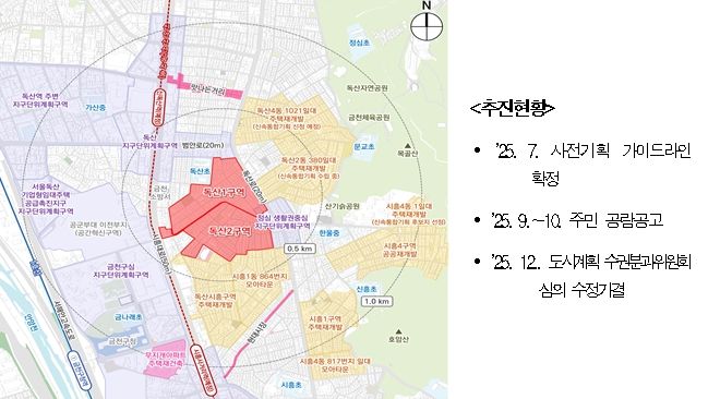데일리굿타임 유종운 기자 | 서울시는 2025년 12월 24일 '제14차 도시계획위원회 신속통합기획 정비사업 등 수권분과위원회'를 개최하여 ‘독산동 1036일대(독산1구역)’과 ‘독산동 1072 일대(독산2구역)’ 주택정비형 재개발사업 정비구역 지정 및 정비계획 결정(안)을 '수정가결' 했다고 밝혔다.