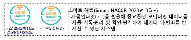 이에 식약처는 도축장 및 집유장도 스마트 해썹 적용업소로 등록할 수 있도록 스마트 해썹 등록 신청 절차·방법을 마련하고 스마트 해썹 심벌을 사용할 수 있는 우대 조치 근거 등을 마련했다.