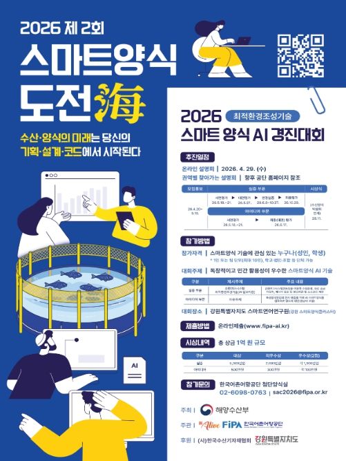 데일리굿타임 유종운 기자 | 해양수산부와 한국어촌어항공단(이사장 홍종욱)은 4월 20일부터 5월 15일까지 ‘제2회 스마트양식 도전해(海) 경진대회’의 공모를 실시한다고 밝혔다.