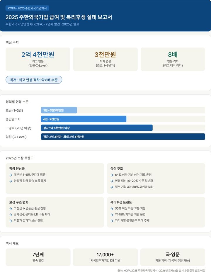 Salaries at Foreign-Invested Companies in Korea Reach KRW 240 Million at the Top and KRW 30 Million at the Bottom… 8-Fold Gap - KOFA Releases “2025 White Paper on Foreign-Invested Companies in Korea” (Enhanced Edition)