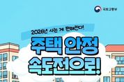 데일리굿타임 유주영 기자 | 2026년 사는 게 편해진다! 주택 안정 속도전으로! ■ 수도권 공급 속도 UP! 2026년, 공급체감도를 획기적으로 높입니다. · 공공택지 착공 확대 수도권 공공택지에서 5만 호 이상 착공 목표 · 3기 신도시 최초 입주 인천계양을 시작으로 3기 신도시 입주가 최초로 시작 · 유휴공간 활용 노후청사, 학교용지 등 유휴공간 복합개발 착공 (~'30년까지 3.5만 호+) ■ 도심 공급 혁신 30년까지 공급 물량 UP! · 도심복합사업 활성화 - 5만 호 착공 목표(~'30년) - 용적률 상향(최대 법적상한 140%) - 일몰제 폐지로 사업 속도 제고 · 민간 정비 촉진 사업 절차 간소화 및 갈등 관리 강화로 최대 3년 단축 효과 ■ 공적 주택 110만 호 이상 공급 임대주택 혁신으로 주거 기본권 보장! · 공급 목표 임기 내 공적 주택 110만 호 이상 공급 · 2026년 공적임대 15.2만 호 공급 목표 · 재고율 목표 OECD 평균(7.1%)을 넘어 10% 달성 목표 ■