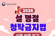 데일리굿타임 유주영 기자 | ■ 2026년 설 명절 청탁금지법 선물 바로 알기 하나, 공직자에게 원활한 직무수행 또는 사교·의례 목적으로 제공되는 선물은 5만 원, 농축수산물 및 농축수산가공품 선물은 15만 원까지 가능합니다. 다만, 명절 기간*에 한정하여 농축수산물 및 농축수산가공품 선물은 30만 원까지 허용됩니다. *2026.1.24.(토)~2.22.(일) (30일간), 택배 등으로 발송 시에는 발송일자 기준 둘, 공직자의 직무와 직접적인 이해관계*가 있는 경우에는 가액 범위 내라 하더라도 원활한 직무수행, 사교·의례 목적으로 볼 수 없으므로 공직자에게 일체의 선물도 줄 수 없습니다. *인·허가신청 민원인, 입찰참여 등 유관기관, 인사·평가·감사 대상자 등과 담당 공직자 관계 셋, 농축수산물 선물에는 농산물, 축산물, 수산물뿐만 아니라 임산물도 포함됩니다. 농축수산가공품*은 농축수산물을 원료 또는 재료의 50%를 넘게 사용하여 가공한 제품만 해당합니다. *농축수산가공품 해당 여부는 소관부처인 농림축산식품부, 해양수산부에 문의 넷, 청탁금지법상 선물에 포함되는 상품권은 특정한 물품 또는 용역의 수