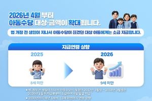 데일리굿타임 유주영 기자 | 2026년 4월부터 아동수당 대상·금액이 확대됩니다. 법 개정 전 생일이 지나서 아동수당이 끊겼던 대상 아동에게는 소급 지급합니다. ■ 지급연령 상향 (2025) 8세 미만 → (2026) 9세 미만 *법 개정 전 생일이 지나서 아동수당이 끊겼던 2017년 1월생 ~ 2018년 3월생은 2026년 1월 미지급분부터 소급하여 4월 일괄 지급 *2030년까지 매년 1세씩, 13세 미만까지 연령 상향 ■ 거주지역에 따른 지급액 - 수도권: 10만 원 - 비수도권: 10만 5천 원 - 인구감소지역* 우대지역: 11만 원 - 인구감소지역 특별지역: 12만 원 *인구감소지역에서 조례 제·개정 등을 통해 지역사랑상품권으로 지급하는 경우 1만 원 추가 지급 ■ 신청 방법 · 아동수당 지급 중단 아동: 지급 정보 확인되면 별도 신청 없이 직권 지급 · 아동수당 받은 적 없는 아동: 복지로 또는 읍면동 행정복지센터 신규 신청