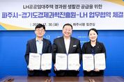 데일리굿타임 유종운 기자 | 파주시는 30일 경기도경제과학진흥원, 한국토지주택공사 경기북부지역본부와 경과원 파주시 이전에 따른 엘에이치(LH) 공공임대주택 생활관 지원을 위한 업무협약을 체결했다고 밝혔다. 이번 협약은 경과원의 단계적 이전에 앞서 직원들에게 안정적인 정주환경을 제공함으로써 거주지 이전에 따르는 비용 부담을 최소화하기 위한 세 기관간 협력을 강화하는 차원에서 추진됐다. 협약에 따라 한국토지주택공사는 운정신도시 내 공공임대주택 중 보유 공실 일부를 생활관 용도로 활용할 수 있도록 공급 방안을 검토하고, 파주시는 입주 절차와 행정적 지원을 담당한다. 경과원은 대상자 선정과 운영 관리 등 내부 절차를 마련해 실제 입주가 차질 없이 진행될 수 있도록 준비할 계획이다. 김경일 파주시장은 “이번 협약이 파주에 둥지를 틀게 될 경과원 직원들이 걱정 없이 생활할 수 있는 실질적인 지원이 될 것으로 기대한다”라고 말했다. 김현곤 경기도경제과학진흥원장은 “직원들의 주거 부담을 줄이는 것은 이전 성공의 핵심 요소”라며 “세 기관이 함께 만들어가는 협력체계가 앞으로도 좋은 모델이 되길 바란다”라고 전했다.