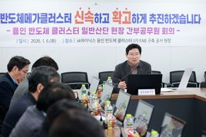 데일리굿타임 유종운 기자 | 용인특례시는 6일 SK하이닉스의 첫 번째 팹(Fab) 건설공사가 진행 중인 처인구 원삼면 용인 반도체 클러스터 일반산업단지 현장을 방문해 2026년 첫 현장 간부공무원 회의를 진행했다. 회의는 용인 반도체 클러스터 일반산업단지 조성 현황을 현장에서 직접 점검하고, 개발에 따른 도로·전력·용수 등 기반시설 확충과 주민 불편 해소 방안을 논의하기 위해 열렸다. 이곳엔 향후 30여년간 SK하이닉스가 600조 원을 투자한다. 회의에는 이상일 시장을 비롯해 제1·2부시장, 실·국장 등 간부공무원과 반도체 관련 부서 관계자 등 30여 명이 참석했다. 이상일 시장은 “용인의 반도체 프로젝트는 특정 지역의 이해관계를 넘어 대한민국의 미래 경쟁력과 직결된 국가 핵심 전략사업”이라며 “최근 용인 이동·남사읍 첨단시스템반도체 국가산단과 원삼면 용인 반도체 클러스터 일반산단을 겨냥한 지방 이전 논란에 대해 중앙정부 차원의 명확한 정리가 이뤄지지 않음에 따라 지역 간 갈등이 커지는 상황이 매우 안타깝다”고 밝혔다. 그러면서 “6월 지방선거를 앞두고 일부 정치인이 선동함에 따라 혼란이 확산되고