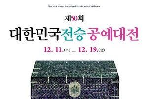 데일리굿타임 유다영 기자 | 국가유산청은 (사)국가무형유산기능협회와 함께 12월 11일부터 19일까지 국가무형유산전수교육관 전시장(서울 강남구)에서 '제50회 대한민국전승공예대전'을 공동으로 개최하고, 올해 수상작 163점을 전시한다. 올해로 50회를 맞은 전승공예대전은 반세기 동안 우리 전통공예의 맥을 보존·계승해 온 장인들의 헌신과 노력이 집약된 뜻깊은 행사로, 신진 작가와 기성 장인을 아우르는 전통공예 분야 최고의 공모전으로 자리매김해왔다. 이번 전승공예대전에는 총 12개 분과에서 339점의 작품이 접수되어, 1차 심사를 통해 수상작 163점이 우선 선정됐다. 이후, 대국민 인터넷 공람, 전문가 현장실사, 2차 심사를 거쳐 대통령상을 포함한 9개 본상 수상작이 확정됐다. 대통령상에는 정기환 작가의 ‘나전 국화문 보석함’이 선정됐다. 전통적 짜임 방식과 칠 기법을 활용하여 뛰어난 견고함과 전통성을 갖춘 수작으로 호평을 받았으며, 높은 숙련도와 완성도 또한 인정받았다. 국무총리상은 김청운 작가의 ‘금서대’로, 서대를 섬세한 제작 기법으로 재료의 무늬를 살려 제작한 예술성이 돋보인다는 평을 받았다.