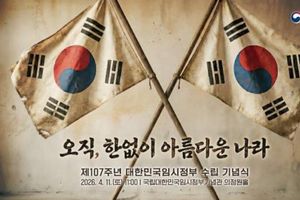 데일리굿타임 유다영 기자 | 국가보훈부는 1919년 4월 11일 조국독립을 위해 수립된 임시정부의 자랑스러운 역사를 기억하고, 그 법통과 정신을 계승하기 위한 ‘제107주년 대한민국임시정부수립 기념식’을 11일 오전, 서울 서대문구 국립대한민국임시정부기념관(의정원홀)에서 거행한다고 밝혔다. ‘오직, 한없이 아름다운 나라’를 주제로 개최되는 올해 기념식에는 독립유공자 후손, 정부 주요 인사, 학생 등 300여 명이 참석한 가운데, 국민의례와 임시헌장 낭독, 기념사, 기념공연, 대한민국임시정부 성립 축하가 제창 순으로 약 40분간 진행된다. 먼저, 국민의례 후 이어지는 임시헌장 낭독은 제1회 대한민국임시의정원 회의를 통해 제정된 ‘대한민국임시헌장’을 대한민국임시정부기념사업회장과 독립유공자 후손 2명이 낭독한다. 기념사에 이은 기념공연은 김구 탄생 150년 계기 특별공연으로, 영화 ‘암살’에서 ‘김구’역을 맡은 배우 김홍파가 국립국악원 국악 연주와 함께 대한민국임시정부의 여정을 1인 낭독극을 선보인다. 낭독극 대사는 백범일지에서 발췌한 문장들로만 구성했다. 끝으로, 모든 참석자가 ‘대한민국임시정부 성립