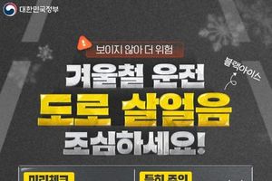 데일리굿타임 유주영 기자 | 보이지 않아 더 위험 겨울철 운전 도로 살얼음(블랙아이스) 조심하세요! ■ 미리체크 · 기상·도로 정보 수시 확인 · 타이어 마모 수준, 공기압 점검 ■ 특히 주의 · 오전 출근 시간대 · 교량 위·터널 출입구·그늘진 커브길 ■ 절대 감속 · 앞차와 안전거리 충분하게 · 급가속·급제동·급회전 금지 ■ 차분히 대처 · 미끄러질 때 핸들은 미끄러지는 쪽 방향으로 · 엔진브레이크로 기어 변속
