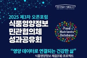 데일리굿타임 유주영 기자 | 식품의약품안전처는 빅데이터 기반 개인 맞춤 영양관리의 필수 요소인 식품영양성분 통합 데이터베이스(DB)의 활성화 방안 등을 논의하기 위한 ‘2025년 제3차 식품영양정보 민관협의체’ 오픈 포럼을 12월 17일 개최한다. 식약처는 2023년부터 식품영양성분 DB 활용성 강화와 현장 애로사항 해소를 위해 산·학·연·관이 참여하는 민관협의체를 운영해 왔다. 이번 포럼에서는 영양성분 데이터 보완을 위한 소그룹 활동인 ‘채움 프로젝트(Fill Project)’ 운영 등 ‘25년 주요 성과를 공유하고 수요 기반의 식품영양 DB 고도화, 활용성 강화를 위한 민관 협력 방안 등을 논의한다. 특히, ‘채움 프로젝트’는 식단 관리 앱 등에서 활용 수요는 높지만 영양표시 의무 성분이 아니어서 DB 확보에 어려움이 컸던 칼슘 등 영양 정보를 업체가 보유한 데이터로 제공받아 채우는 것으로 민간에서 먼저 제안되어 추진한 사업이다. 협의체에 참여한 AI 헬스케어 서비스 업체 ‘두잉랩’ 관계자는 “칼슘 등 일부 정보가 부족해 개인 맞춤형 영양관리 앱 개발 시 정확성에 한계가 있었지만, 채움 프로젝트