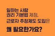 데일리굿타임 유주영 기자 | 일하는 사람 권리 기본법 제정, 근로자 추정제도 도입은 왜 필요한가요? 제대로 알려드립니다. Q1. 일하는 사람 권리 기본법 제정, 근로자 추정제도 도입은 왜 하는건가요? AI 혁신, 플랫폼 경제 급성장 등 대전환의 시대에 새롭게 발생하는 모든 형태의 일하는 사람을 보호하기 위함입니다. Q2. 그럼 플랫폼종사자, 프리랜서 등은 모두 근로기준법상 근로자가 되는 건가요? 근로기준법상 근로자의 개념이 바뀌거나 확대되는 것은 아닙니다. Q3. 근로기준법상 근로자 개념이 확대되는 게 아니라면, 플랫폼종사자, 프리랜서 등은 보호되지 않는 것 아닌가요? 플랫폼종사자, 프리랜서도 일하는 사람 권리 기본법에 따라 보호될 수 있습니다. 또한, 근로자 추정제도를 통해 근로자임에도 입증하지 못해 근로자로 인정받지 못했던 사람들을 확실히 보호하면서, 가짜 3.3 감독을 통해 현장의 잘못된 관행을 바로 잡아나가겠습니다. Q4. 일하는 사람 권리 기본법은 선언적 규정이라고 하던데, 그럼 실효성이 없는 것 아닌가요? 기본법은 일하는 사람의 인권, 경제적 권리, 사회보장 권리 등을 규정하고 있으며,