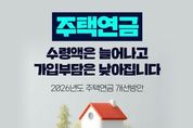 데일리굿타임 유주영 기자 | 100세 시대! 주택연금이 고령층의 노후보장 체계로 확실하게 자리매김할 수 있도록 보장을 확대하고 편의성을 높이겠습니다. - 국정과제: 100세 시대를 위한 주택연금 제도개선 · 주택연금 가입자가 주택을 금융기관에 담보로 제공하고 사망 시까지 매월 일정액을 수취하도록 하는 제도 *누적 약 15만 가구 가입 ■ 주택연금 수령액을 인상합니다. · 평균 가입자(72세, 주택가격 4억 원) 기준 주택연금 수령액 증가 - 2026년 3월 1일 이후 신규신청자부터 적용 ▷월 129만 7000원 → 월 133만 8000원 주택연금 전체 가입 기간 중 수령액 약 849만 원 증가 : 실제 주택연금 수령액은 담보대상 주택가격, 가입자의 연령 등에 따라 상이 · 저가주택 보유자 등 취약고령층에 대한 지원금액 확대 - 2026년 6월 1일 이후 신규신청자부터 적용 우대지원 대상자가 시가 1억 8000만 원 미만 주택에 거주 시 ▷월 9만 3000원→ 12만 4000원 우대 ■ 주택연금 가입부담을 완화합니다. 2026년 3월 1일 이후 신규신청자부터 적용